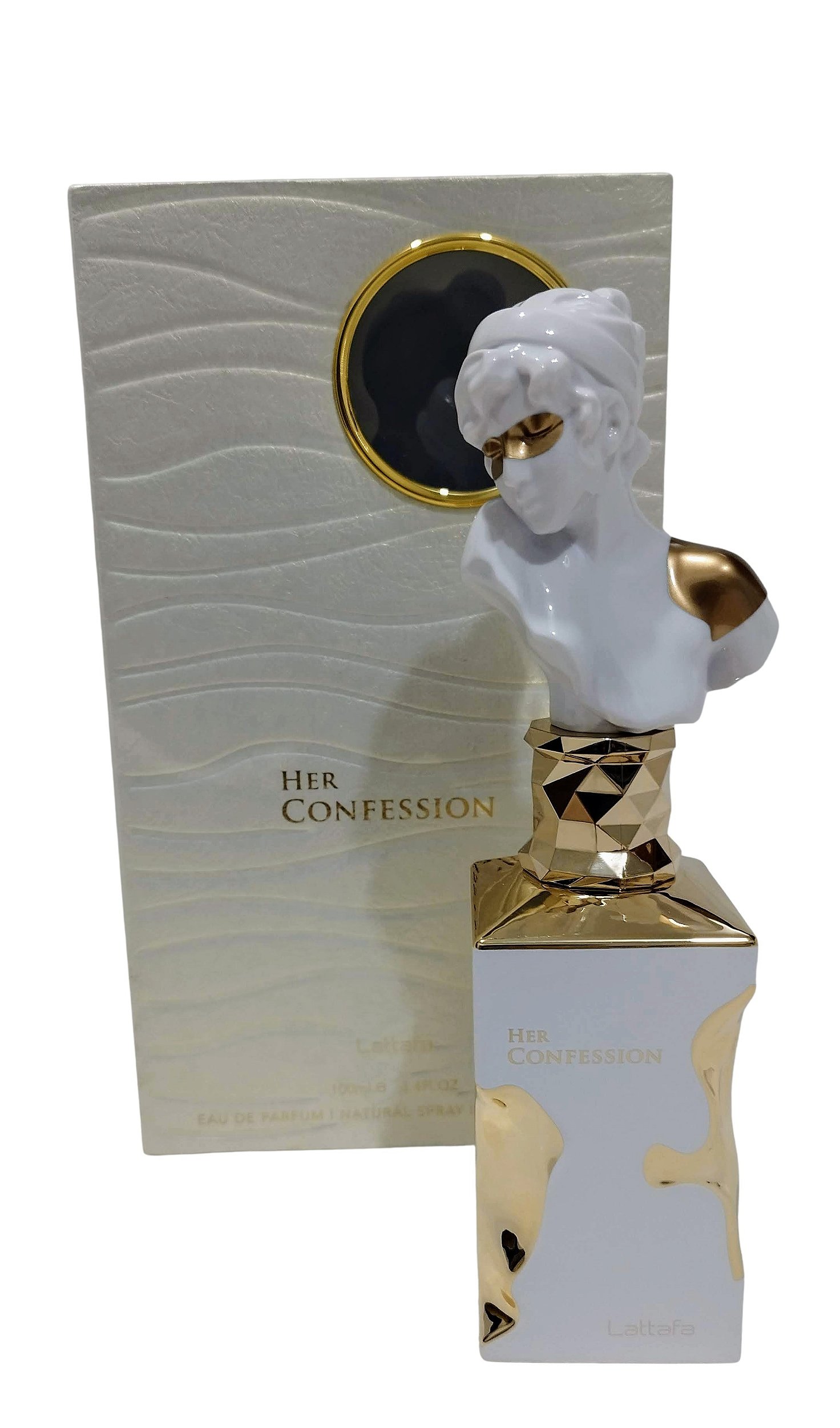 Her Confession de Lattafa Perfumes é um perfume Feminino. Esta é uma nova fragrância. Her Confession foi lançada em 2024. As notas de topo são: Mystikal e Canela. As notas de coração são: Tuberosa, Mahonial®, Jasmim e Incenso. As notas de fundo são: Baunilha, Fava Tonka e Almíscar.