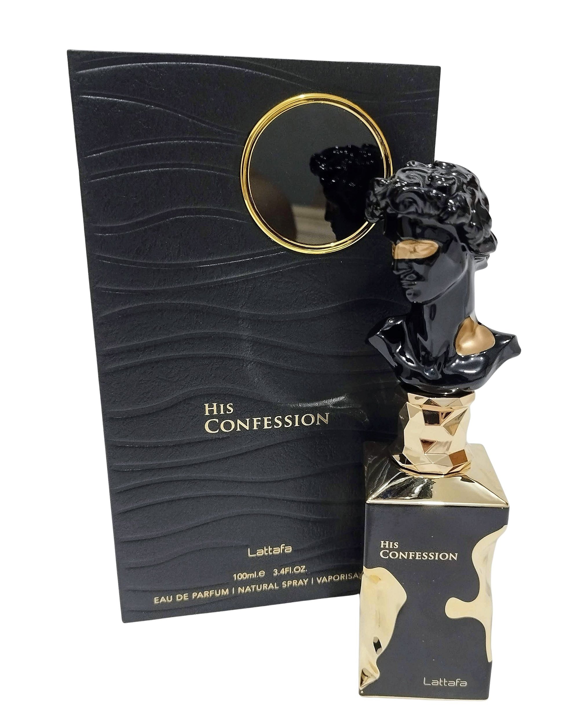 His Confession de Lattafa Perfumes é um perfume Oriental Amadeirado Masculino. Esta é uma nova fragrância. His Confession foi lançada em 2024. As notas de topo são: Canela, Lavanda e Mandarina. As notas de coração são: Íris, Benjoim, Cipreste e Mahonial®. As notas de fundo são: Baunilha, Fava Tonka, Âmbar, Cedro, Incenso e Patchouli.